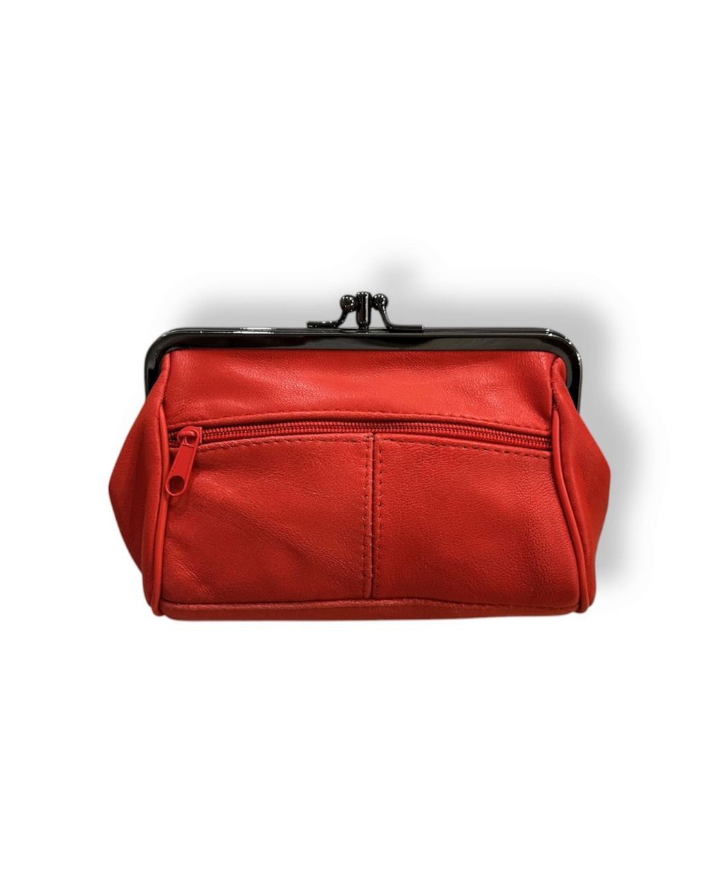 Valódi, különlegesen puha bőrből készült, nagy méretű, keretes pénztárca. Dupla rekeszes, az egyik rekeszben plusz egy keretes tartó található. Az elején található cipzáros zsebben kényelmesen elfér a szabvány méretű plasztikkártya. Egy merevítő segítségével megerősített forma.