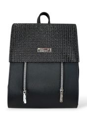 Közepes méretű, merev falú Karen hátizsák. Mágnespatentos fedéllel rendelkezik, amely alatt található az összehúzható fő rekesz. Elején két cipzárral ellátott zseb található.