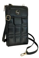 Fekete színű Cavaldi mobiltelefon oldaltáska, steppelt díszítéssel. Két részes, a pénztárca része teljesen körbecipzározható, 4 db kártya tárolására alkalmas.
