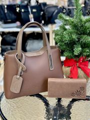 Kisebb méretű, barna színű, szolíd, vízszintesen varott mintával díszített, puha tapintású férfi bőr pénztárca. Belsejében patenttal rögzített, oldalra lapozható kártyatartó és patentos aprótartó található.