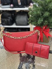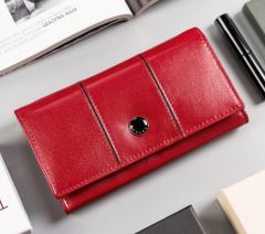 Piros színű, női bőrből készült pénztárca. Belsejében nagyméretű patentos aprótartó zseb található. A papírpénzt 4 osztásos tartóban lehet elhelyezni. RFID védelemmel ellátva.