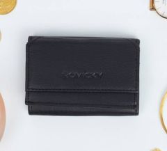 Fekete színű, nagyon pici, puha bőrből készült női pénztárca. A papírpénz kényelmesen, fektetve elfér tárolójában. Külön rekeszszel rendelkezik az aprópénznek.