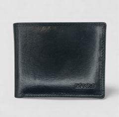 Egyszerű kialakítású, vékony fazonú, vastag bőrből készült, fekete színű férfi pénztárca. Belsejében nem található oldalra, vagy felfelé nyitható kártyatartó.