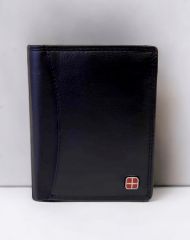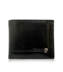 Fekete színű, férfi, puha bőr pénztárca, díszdobozban. 10 db szabványméretű, 4 db nagyobb méretű kártyatartó található benne, amelyből 2 db, ablakos kialakítású.