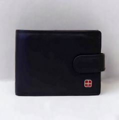 Fekete színű, csatos, férfi bőr pénztárca, díszdobozban.