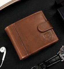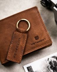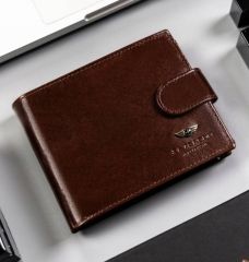 Elegáns barna férfi pénztárca természetes bőrből - Peterson Kiváló minőségű, sima, valódi bőrből készült, tartós, tágas pénztárca, klasszikus dizájnnal. Vízszintes kialakítású, patenttal záródik. RFID-betéttel van bélelve, hogy megakadályozza a kártyaadatok ellopását.
