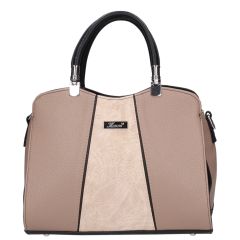 Bézs színű, merev falú kézitáska, melynek eleje arany és pezsgő színű berakással van díszítve. Rendkívül elegáns fazon. Lecsatolható, állítható hosszúságú vállpánttal rendelkezik.