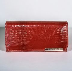 Piros alapszínű, krokodil mintával díszített brifkó pénztárca. Mágneses fedele biztosítja a záródását. Divatos lakkbőrből készült, amely különleges megjelenést kölcsönöz a pénztárcának. Díszdobozzal rendelkezik, ajándéknak is kitűnő választás.