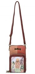 Barna alapszínnel rendelkező Sweet Candy oldaltáska. A táska fókuszpontjában egy romantikus stílusú keretben helyezkedik el a cica. Belseje egyterű kialakítású, több zsebecskével rendelkezik, ezért jól pakolható. Hosszú vállpántjának köszönhetően, keresztben is hordható.
