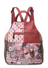 Fekete színű Karen női hátizsák. Rostbőrből készült, amely hosszú élettartamot biztosít a táskának.  A táska alsó felét nyomott virágminta díszíti. Egy nagyobb és egy kisebb méretű cipzáros rekesszel rendelkezik.