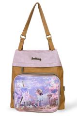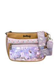 Barna alapszínnel rendelkező Sweet Candy oldaltáska. A táska fókuszpontjában egy romantikus stílusú keretben helyezkedik el a cica. Belseje egyterű kialakítású, több zsebecskével rendelkezik, ezért jól pakolható. Hosszú vállpántjának köszönhetően, keresztben is hordható.