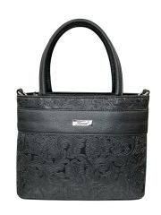 Bordó színű, elegáns Karen női kézitáska, elejét nyomott virágmintás anyagberakás dísziti. Mérete közepes, éppen ideális a mindennapi átlagos használathoz. Állítható hosszúságú, levehető vállpánttal ellátott táska.