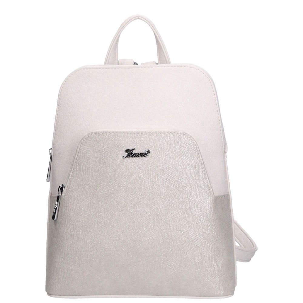 Fehér alapszínű, eleje ezüsttel díszített, divatos női rostbőr hátizsák. Anyagának köszönhetően tartós és könnyű viseletet biztosít a mindennapokban. Kisebb méretű, mégis jól pakolható, szélesen nyitható rekeszének köszönhetően.